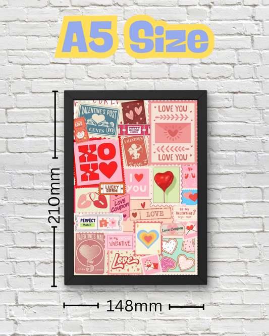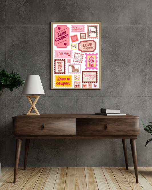 Valentine’s Love Stamp Wall Art - Retro Romantic Coupon & Heart Print - Pink Collage Dorm Décor