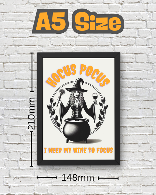 Hocus Pocus I Need My Wine To Focus - Funny Halloween Kitchen Décor - Spooky Wall Décor - Cute Wine Print - Neutral Spooky Poster