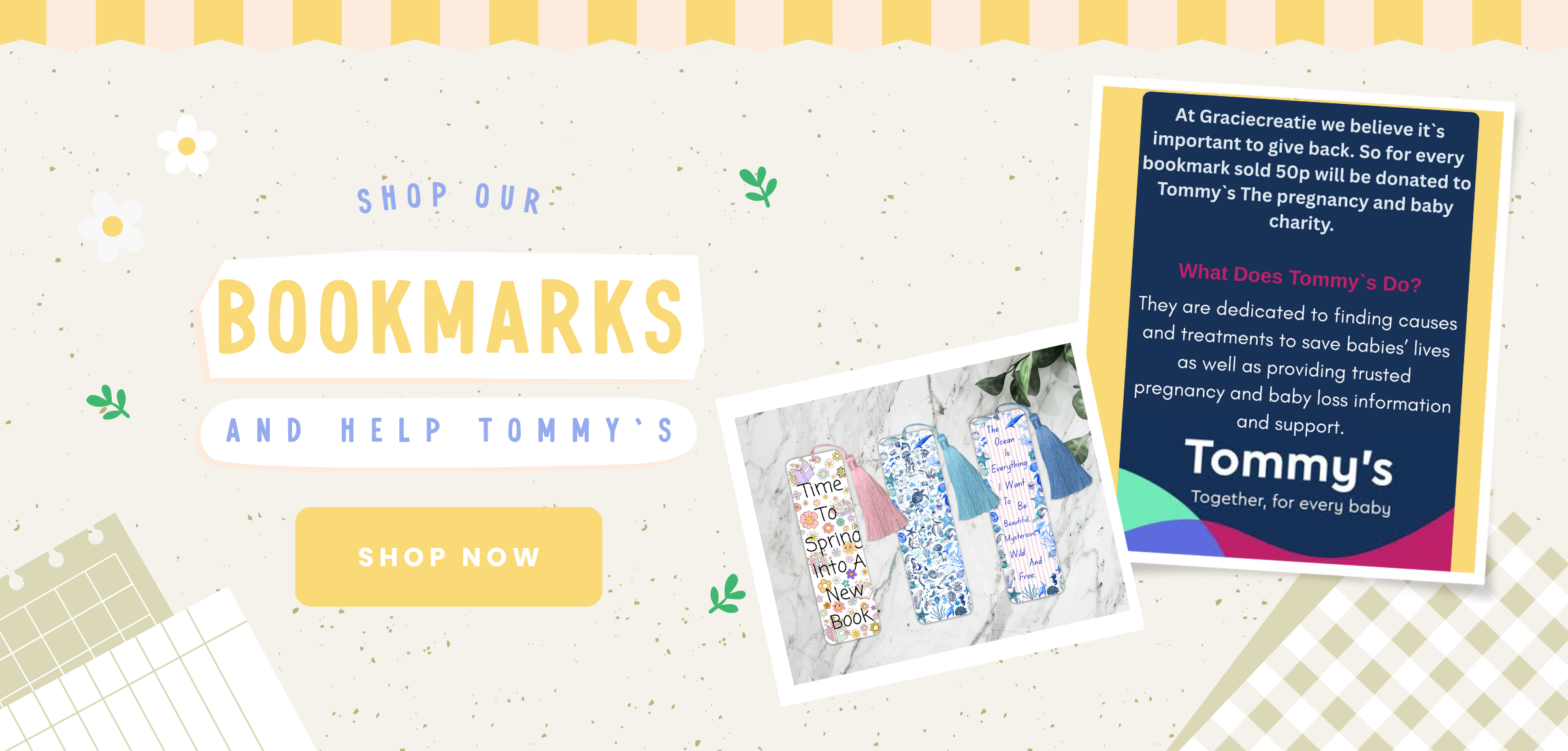 Cute Floral Books Bookmark – Aesthetic Daisy & Book Design – With Tassel Option – Square or Rounded Corners – Charity Donation Included