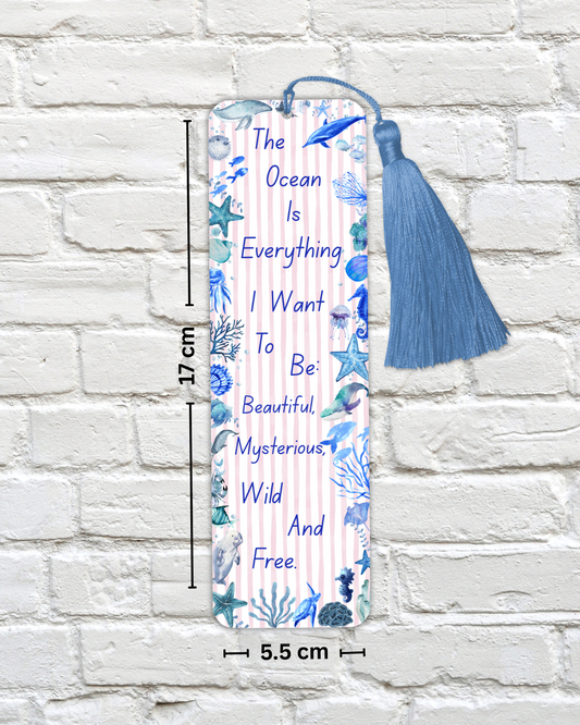 Ocean Quote Bookmark – “The Ocean Is Everything” – Marine Life Design – With Tassel Option – Charity Donation Included