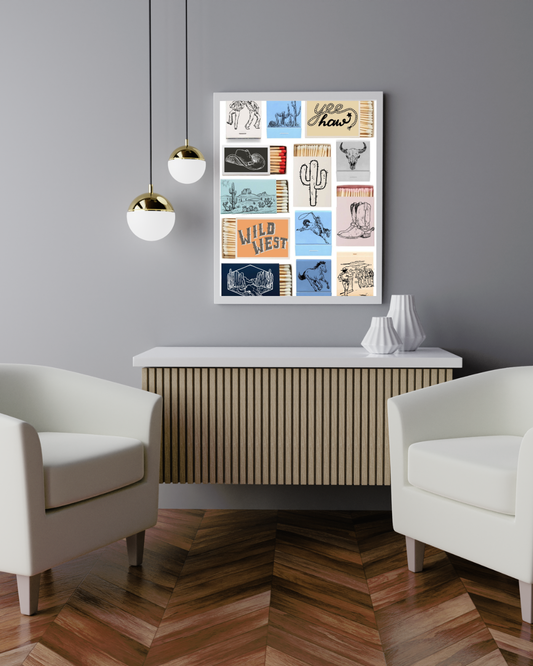 Western Matchbox Wall Art Print – Cowboy, Desert & Rodeo Themed Country Core Décor for Rustic Home or Bar