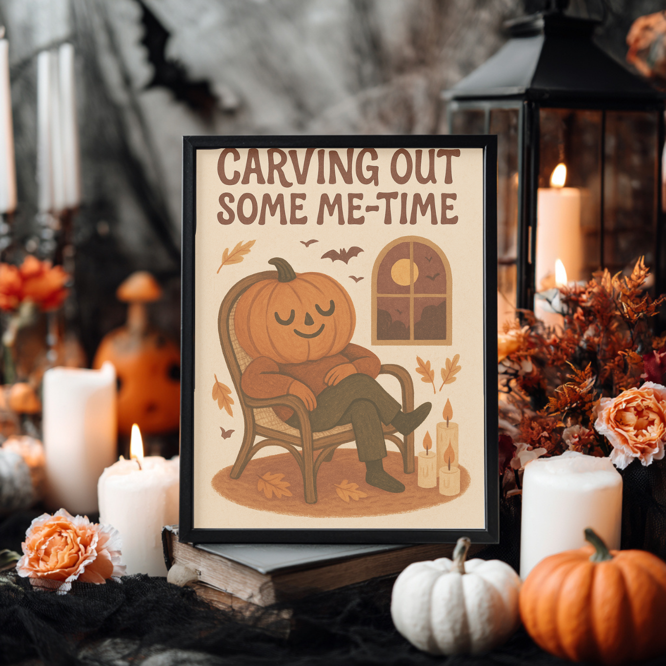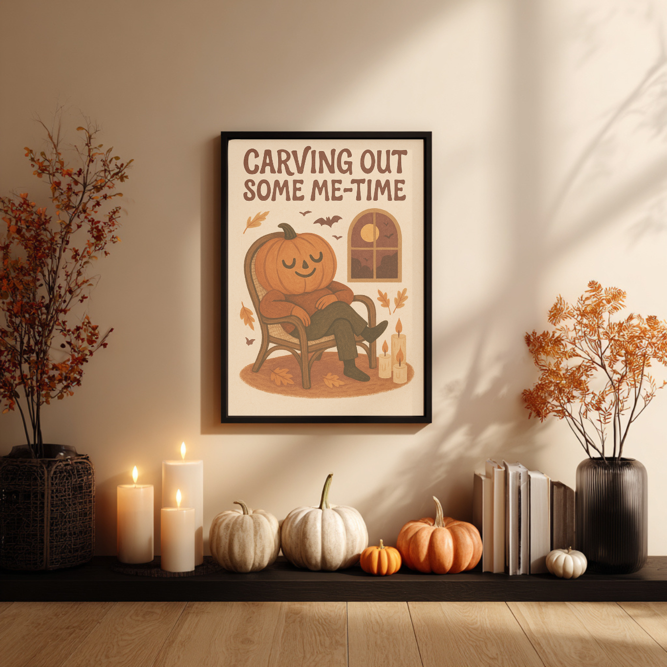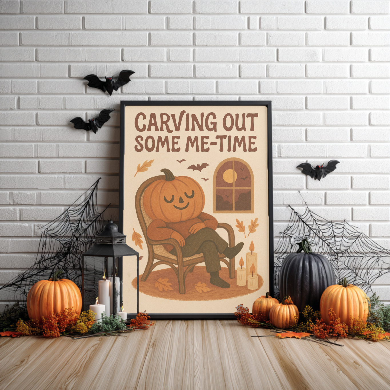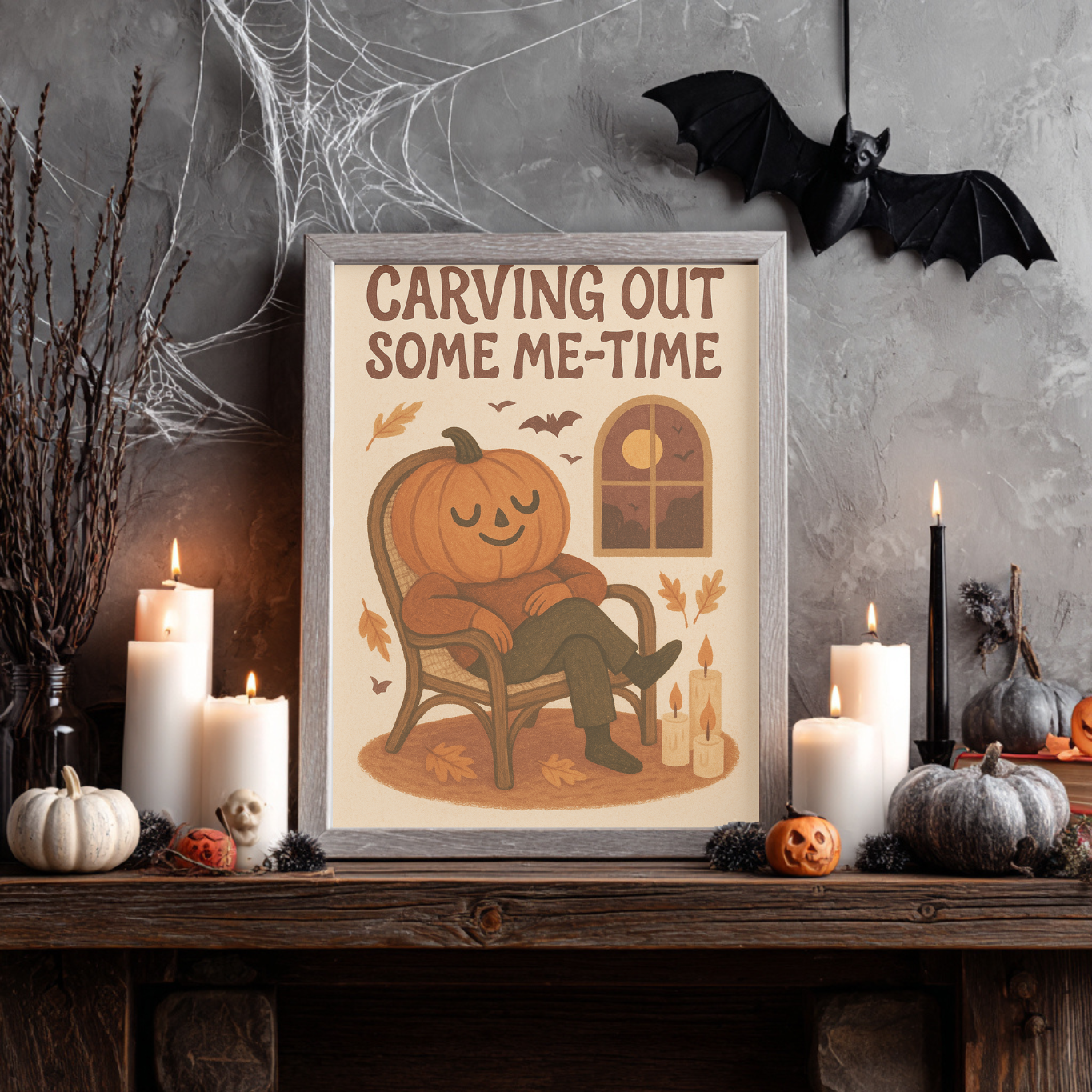 🎃 Carving Out Some Me-Time – Cute Halloween Wall Art Print | Neutral Spooky Fall Décor & Seasonal Poster