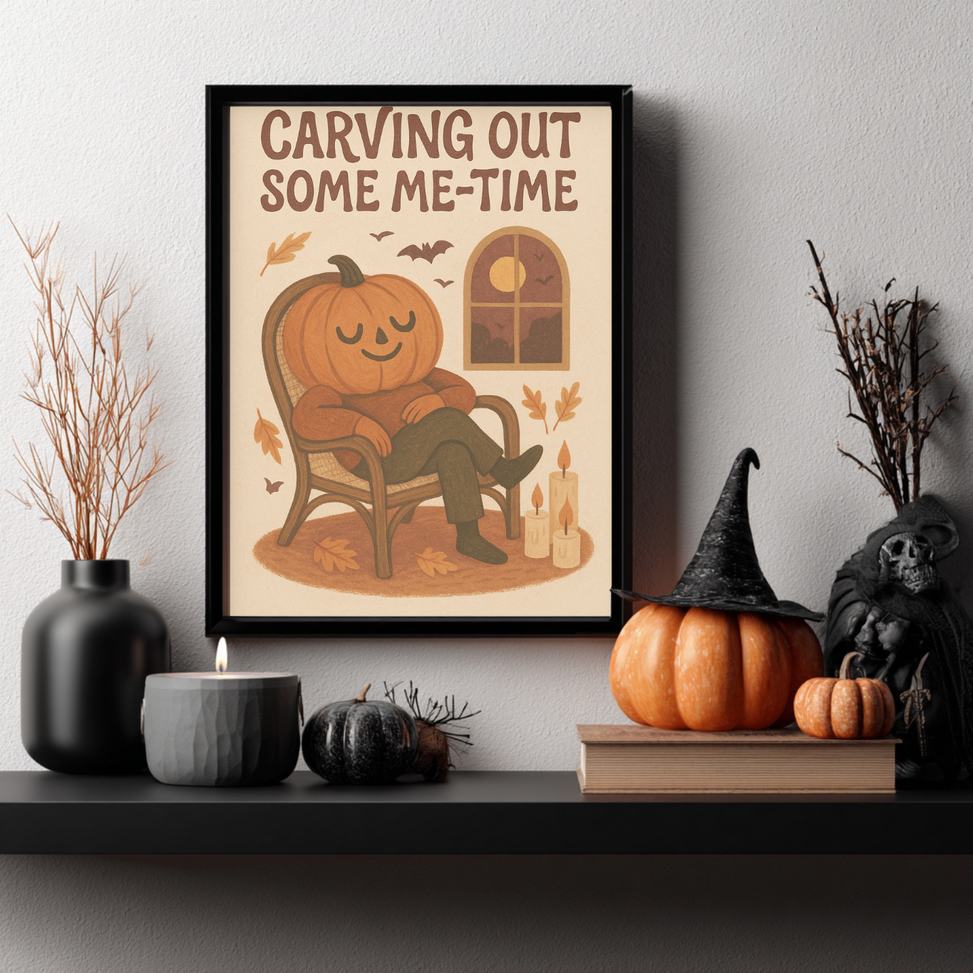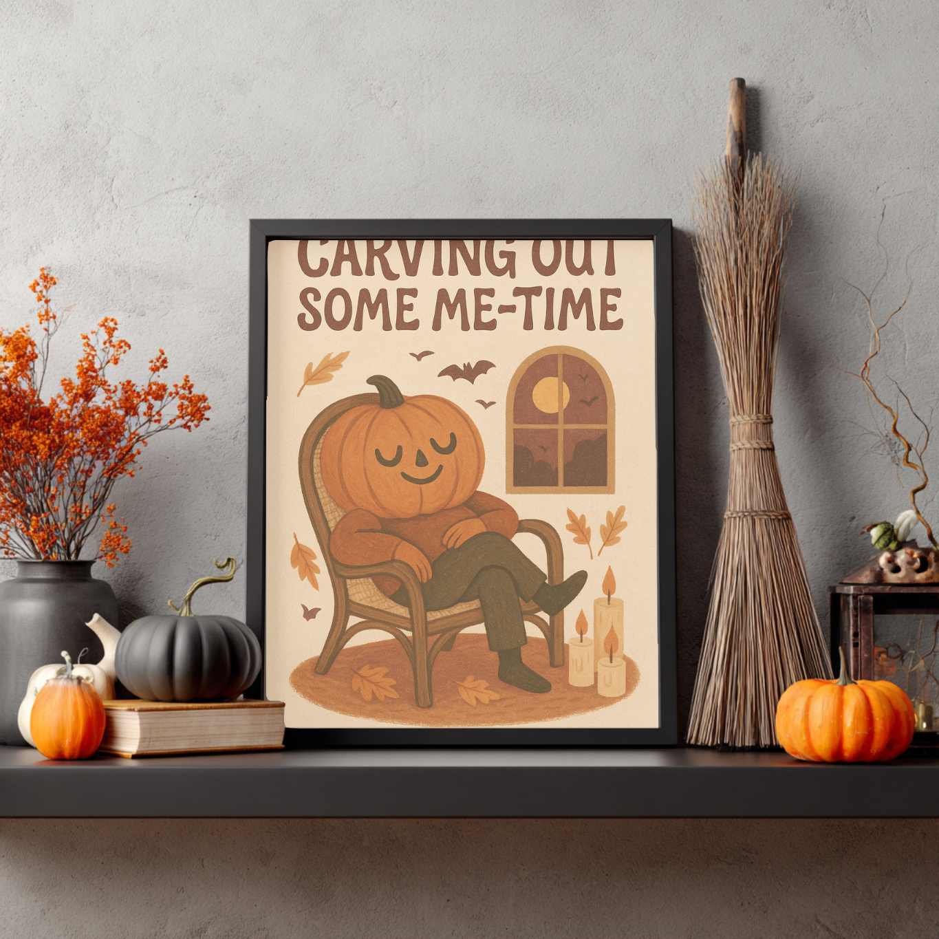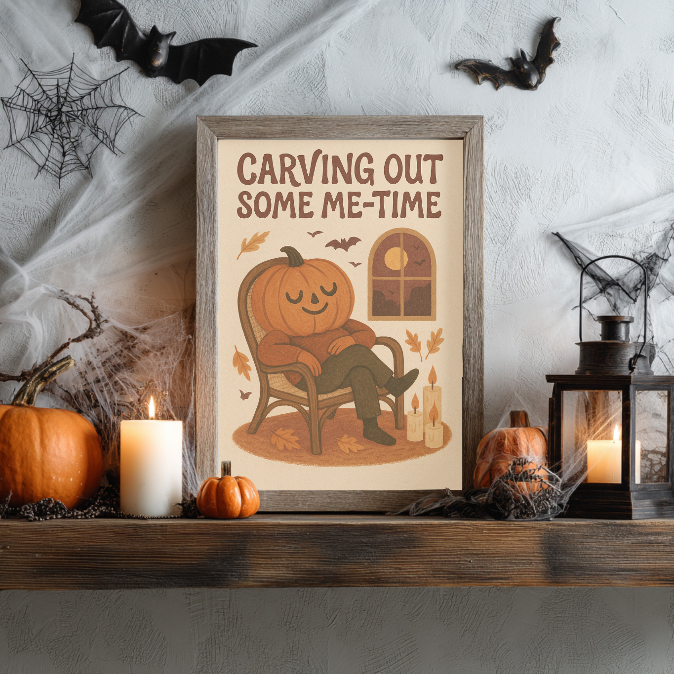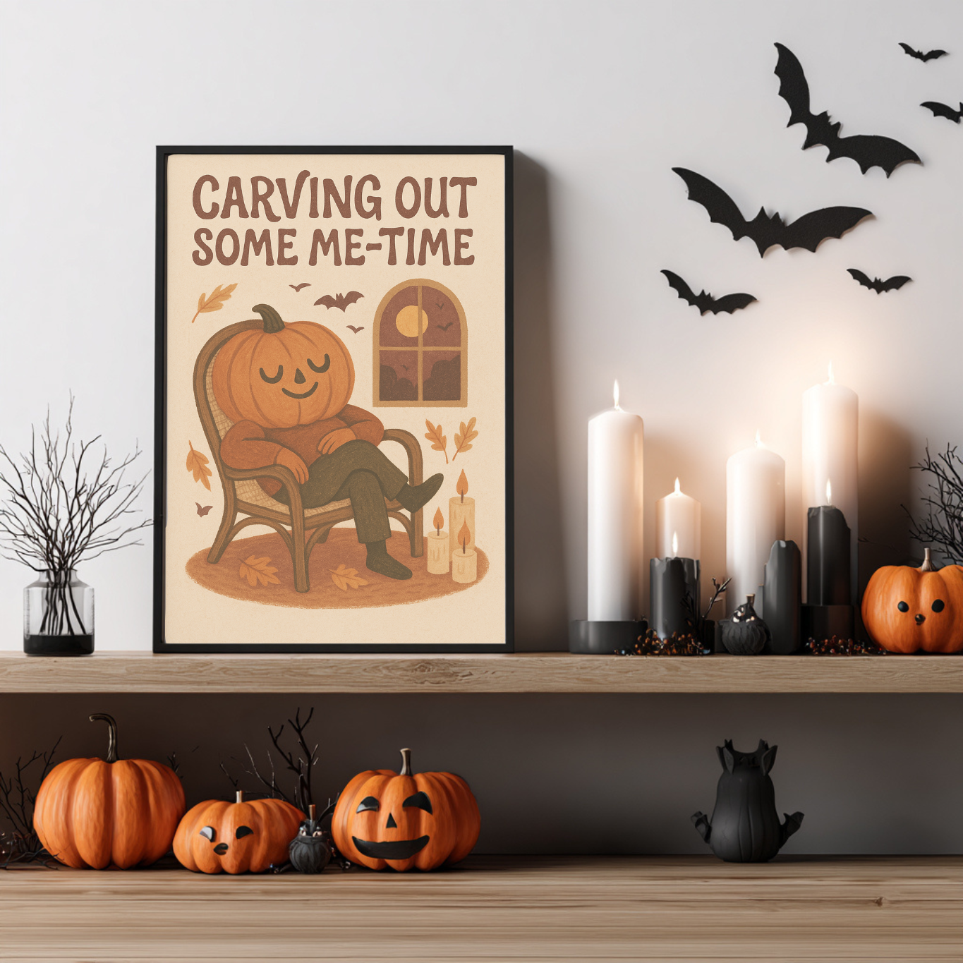 🎃 Carving Out Some Me-Time – Cute Halloween Wall Art Print | Neutral Spooky Fall Décor & Seasonal Poster